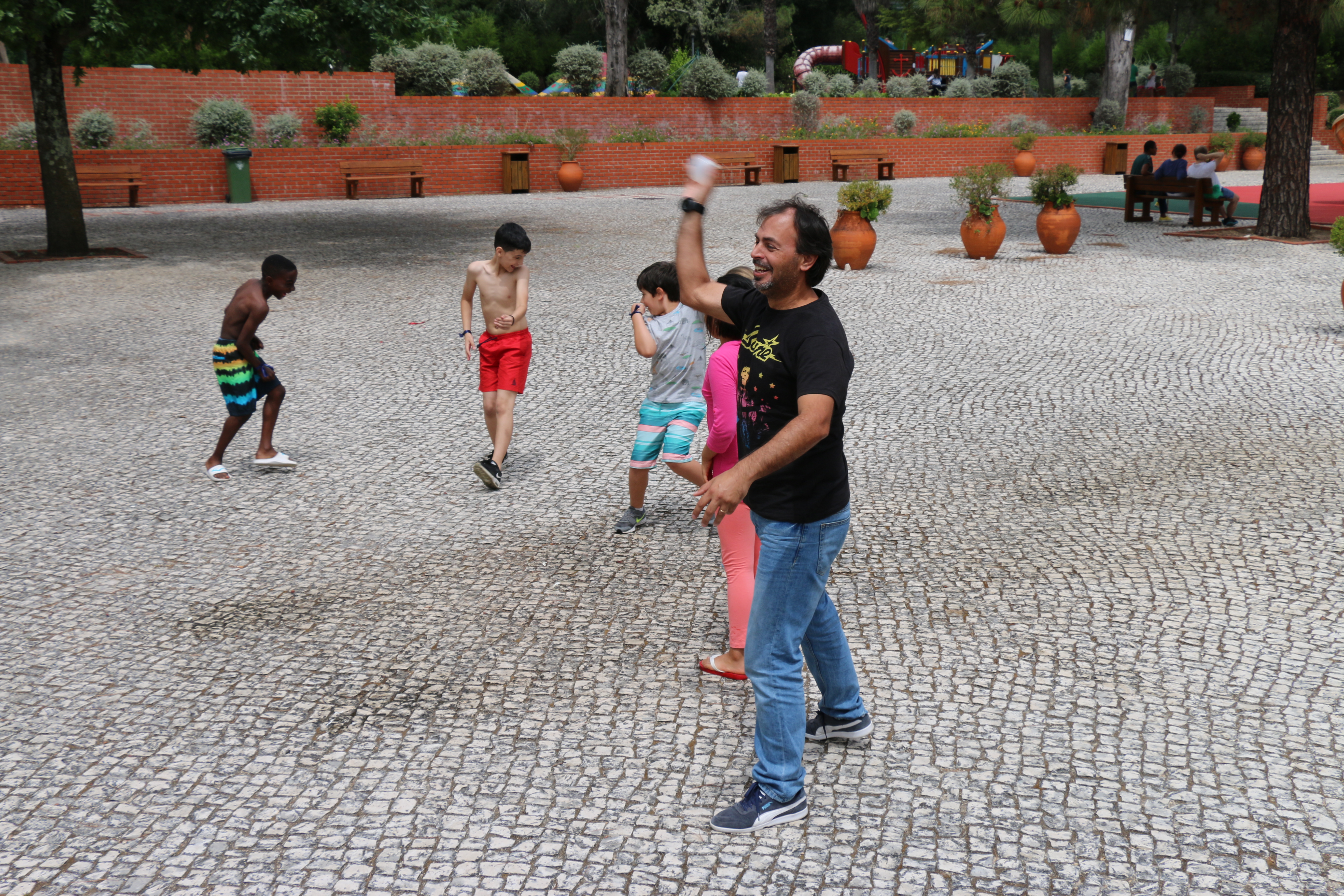 Assim se passou uma manhã muito agradável. Os meninos e as meninas a brincarem aos vários jogos disponibilizados pelas animadoras, acabando numa luta de balões de água (os pais tinham sido avisados e traziam roupa extra e/ou fato de banho).