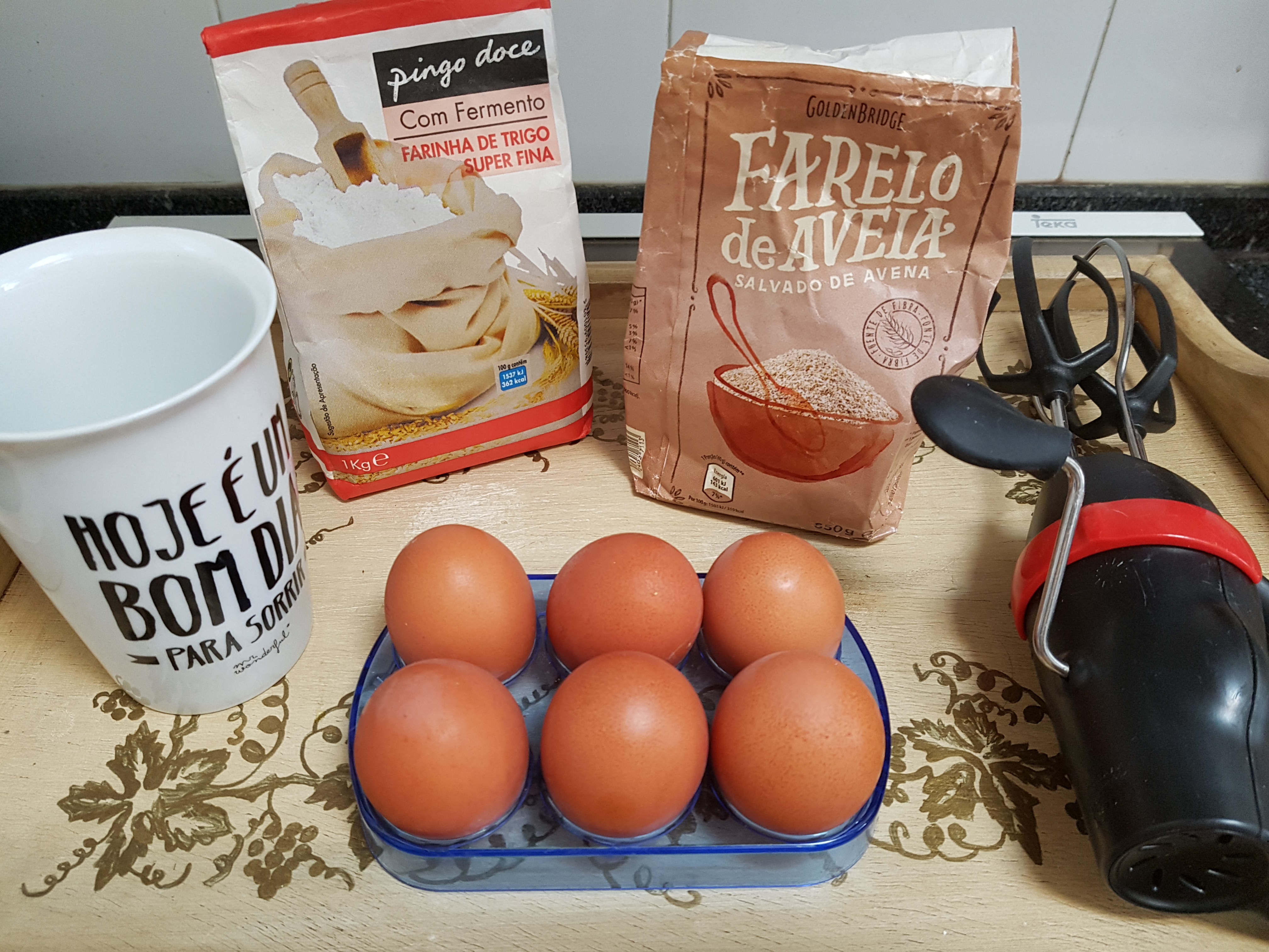 Organizado o espaço, reúnem-se os ingredientes e com as medidas universais de uma caneca leite / caneca de farinha, os jovens ajudam a contar, juntar um ovo e mexer tudo até não existirem grumos de farinha ou aveia (sim alternamos as canecas de farinha com farelo de aveia).