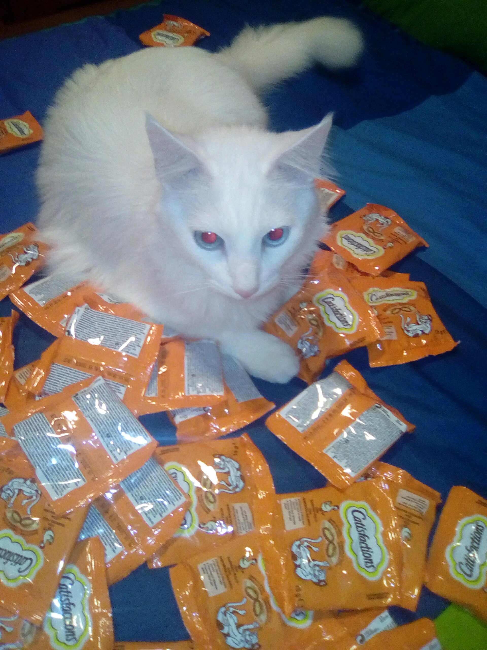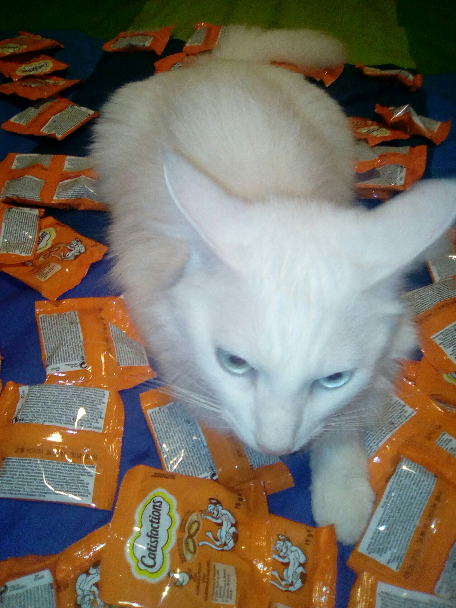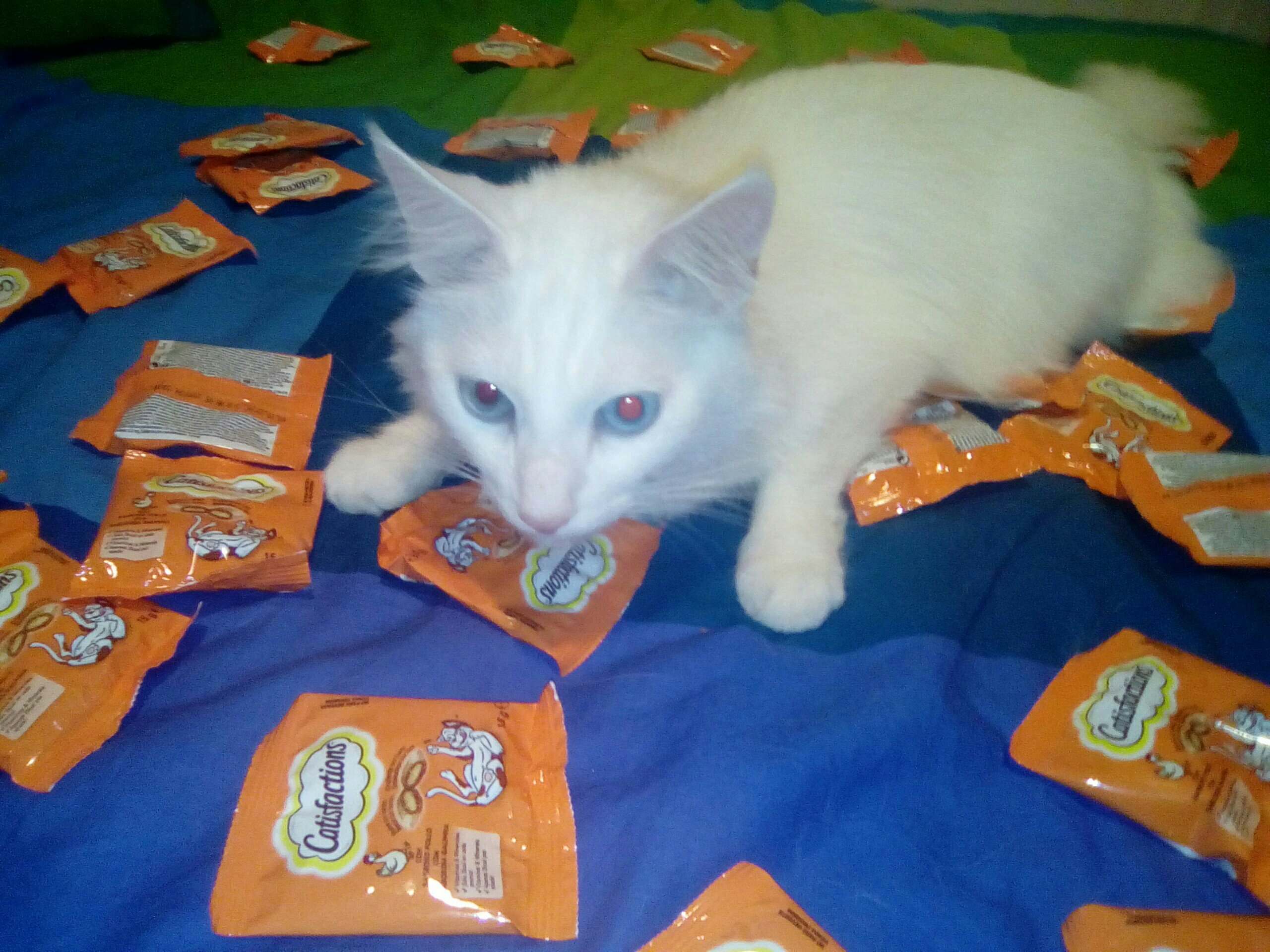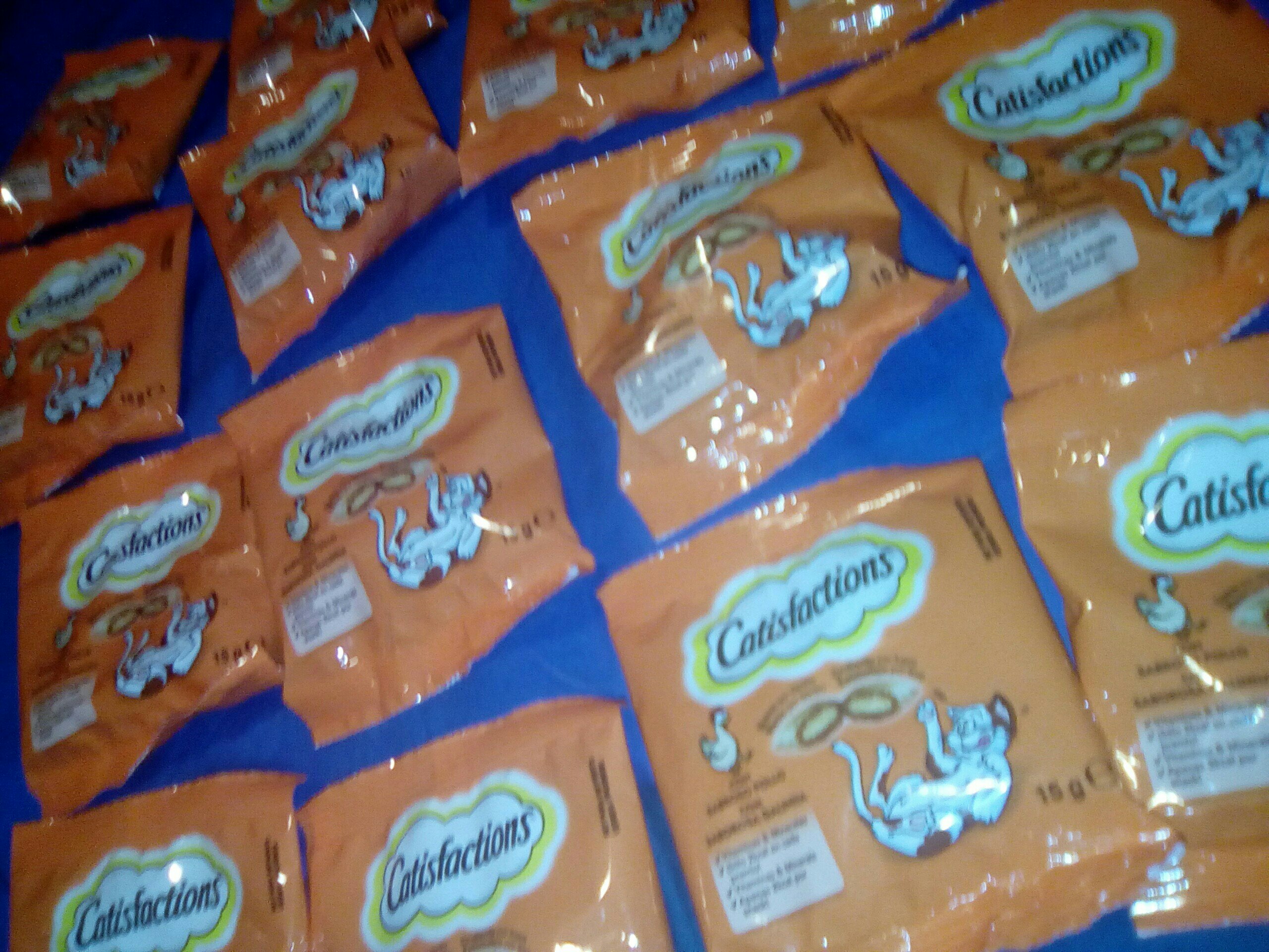 O Faísca não estava com grande vontade de partilhar os seus Catisfactions, que ele adora (e já aprendeu a abrir os pacotes sozinho) mas com alguma negociação fomos lá. Por isso, vamos sortear 5 kits de Catisfactions com 2 saquetas e um vale de desconto.