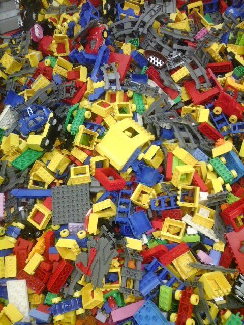 Nos dois anos anteriores e, uma vez que ele estava em casa comigo, íamos lá todas as semanas para o espaço dos mais novos. Aí têm legos duplo, legos tipo tijolo para constução de casa, um comboio, um ginásio, espaço e material para pintarem e ainda estes cubos gigantes para fazermos histórias. Deste lado, as crianças têm de ser acompanhadas por um adulto que as ajuda a desenvolver as atividades. O C. adorava mas queria poder experimentar o lado dos grandes e assim foi. No dia em que fez os 5 anos, passou uma horinha divertido e feliz da vida com o N., enquanto os pais foram namorar para o Starbucks… Vida dura!