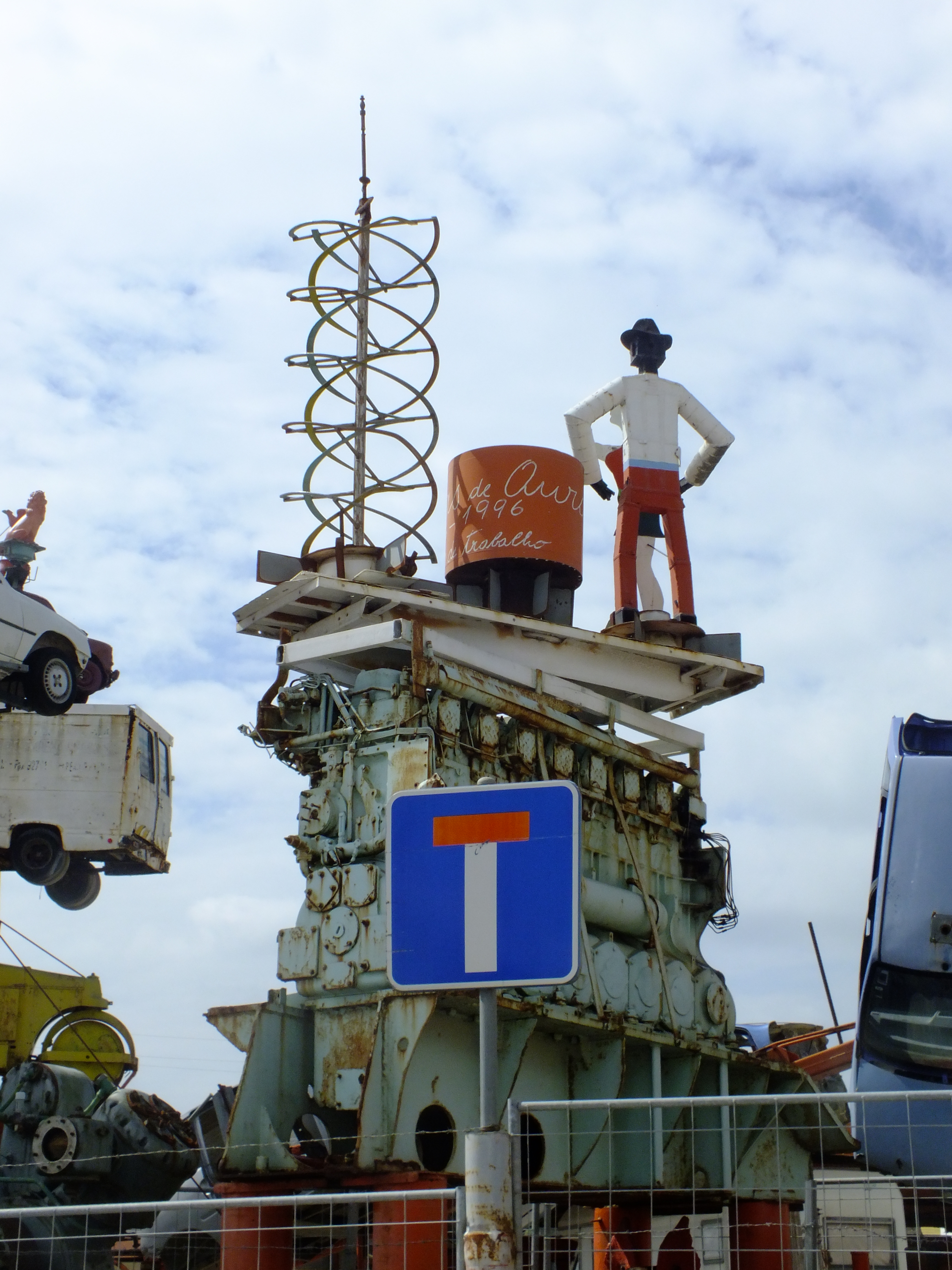 Esta semana temos uma sugestão mais estranha… O ano passado, a professora de música dos nossos filhos residia em Montelavar e dava aulas no domícilio. Isto fazia com que uma vez por semana lá fossemos para Montelavar e eu ia passear. Fiz caminhadas pela terra, pelo campo e aqui está uma sucata artística que me surpreendeu. Se alguma vez forem para aqueles lados, espreitem. É digno de ser visto!