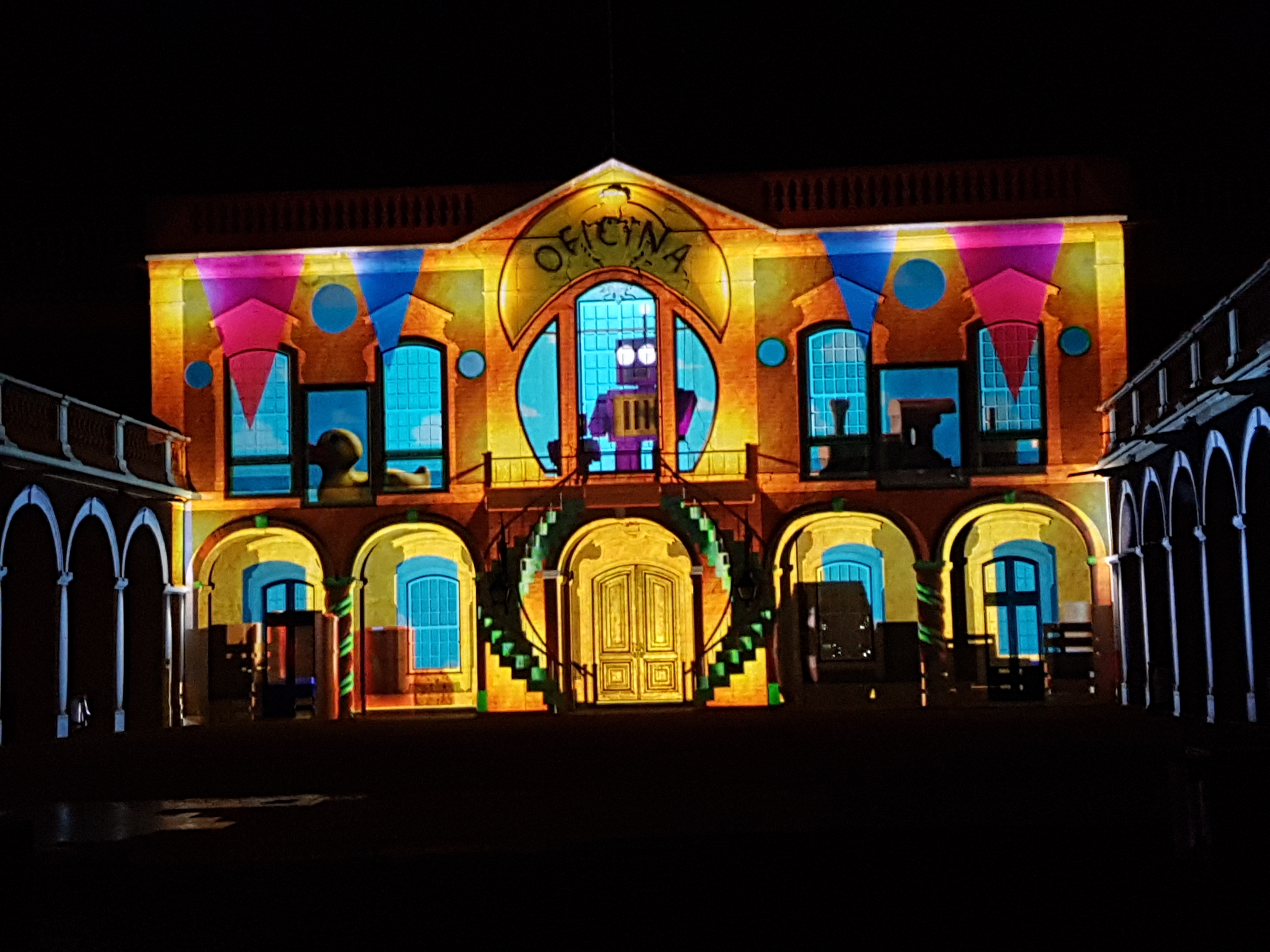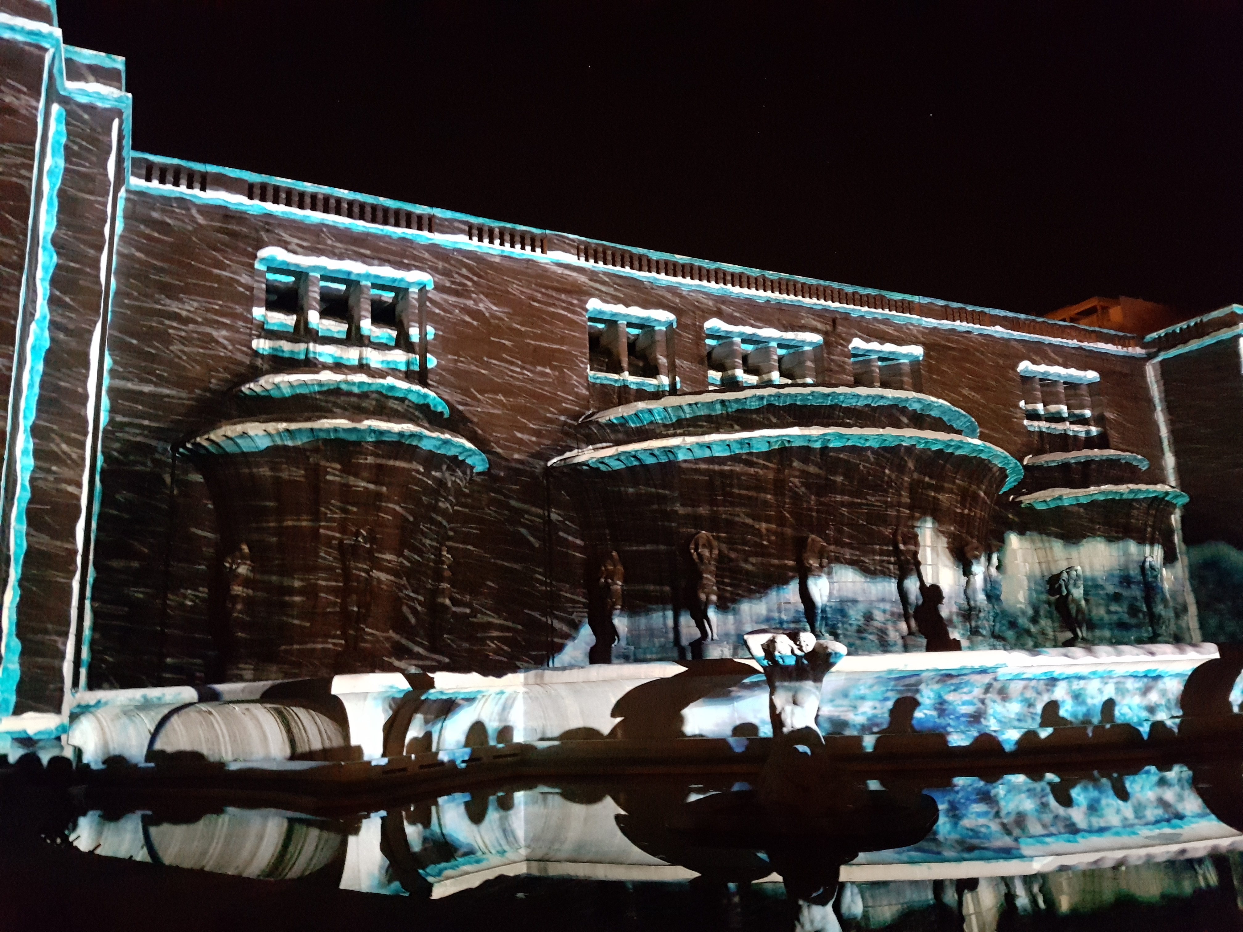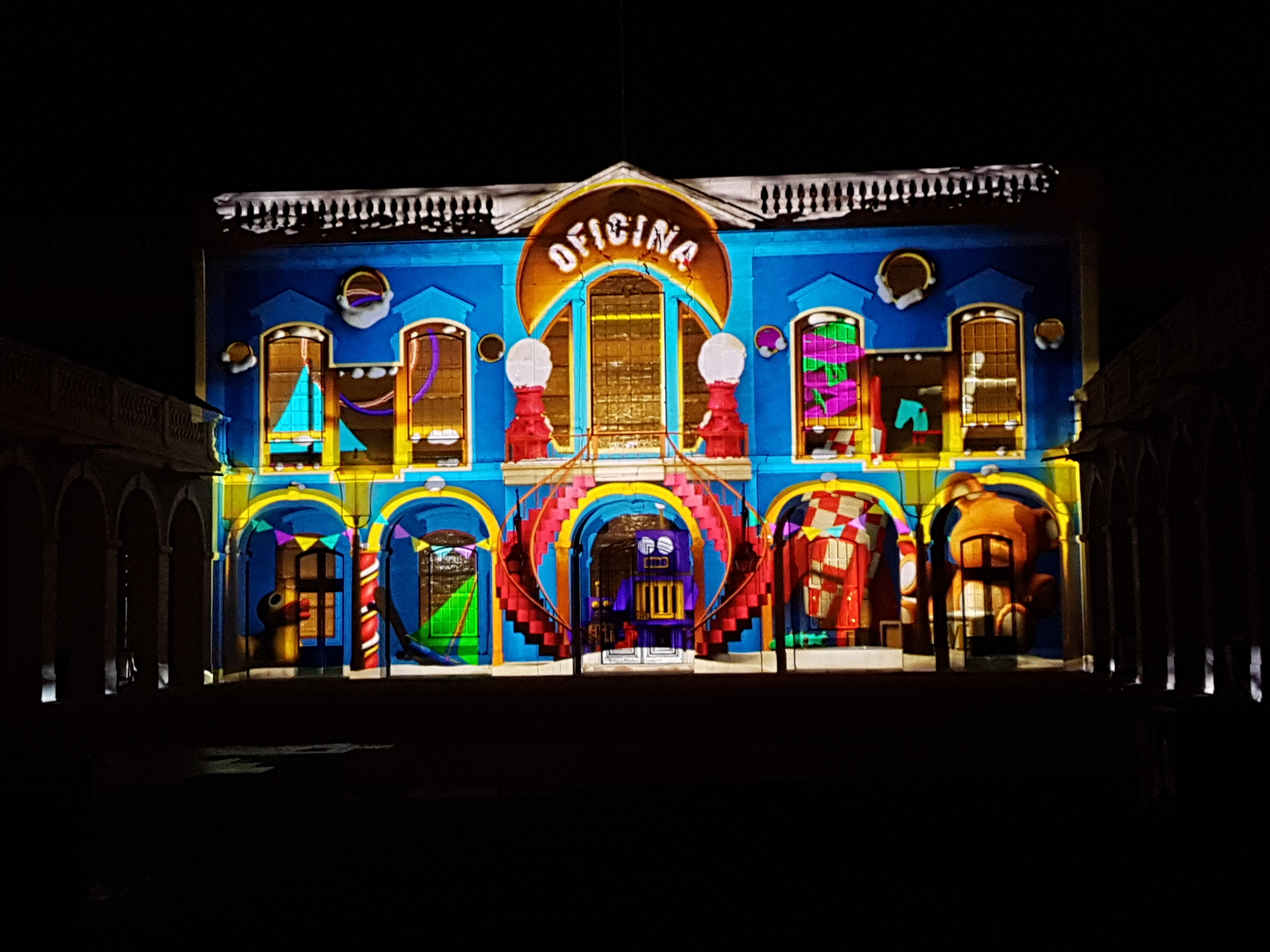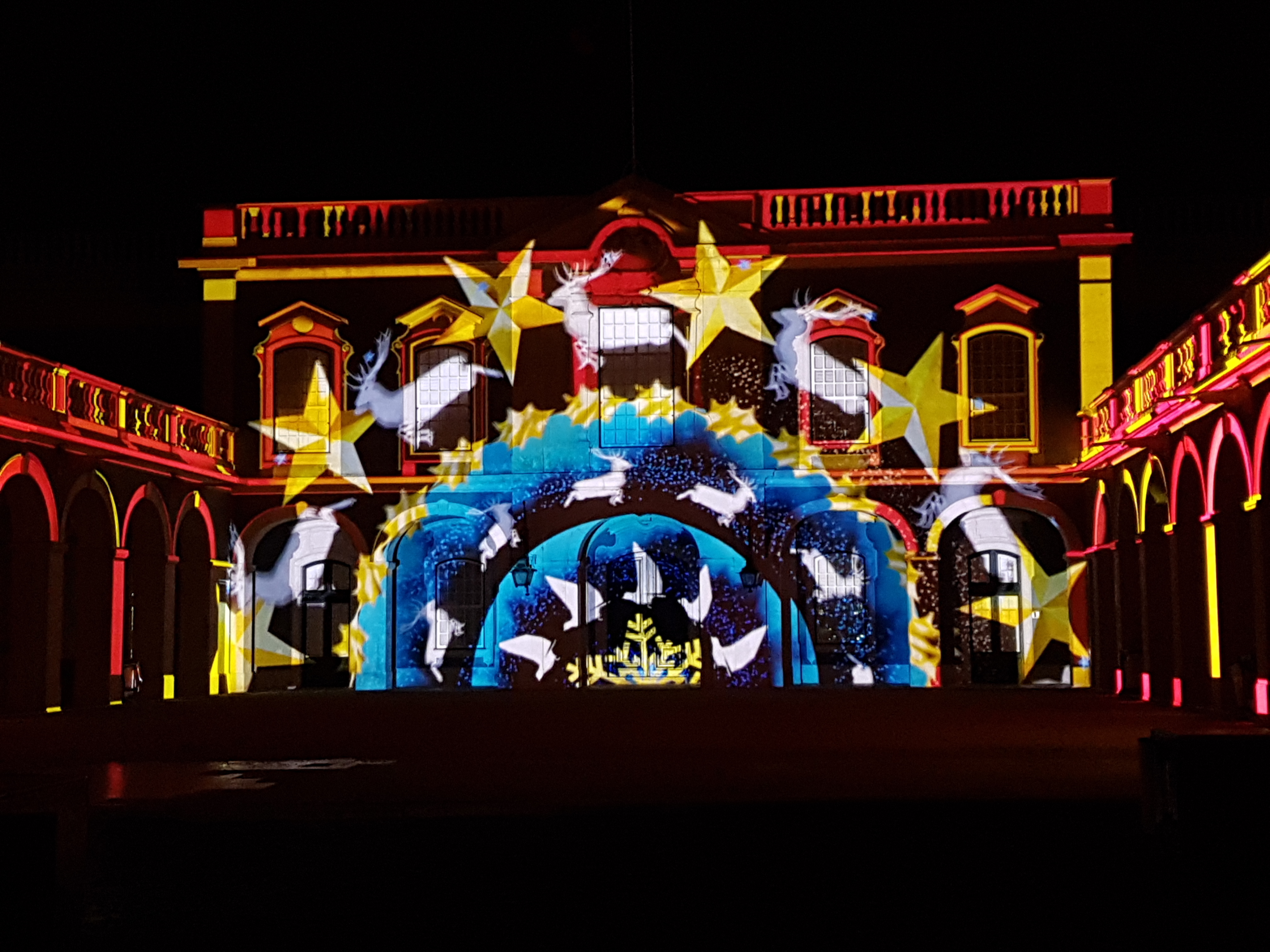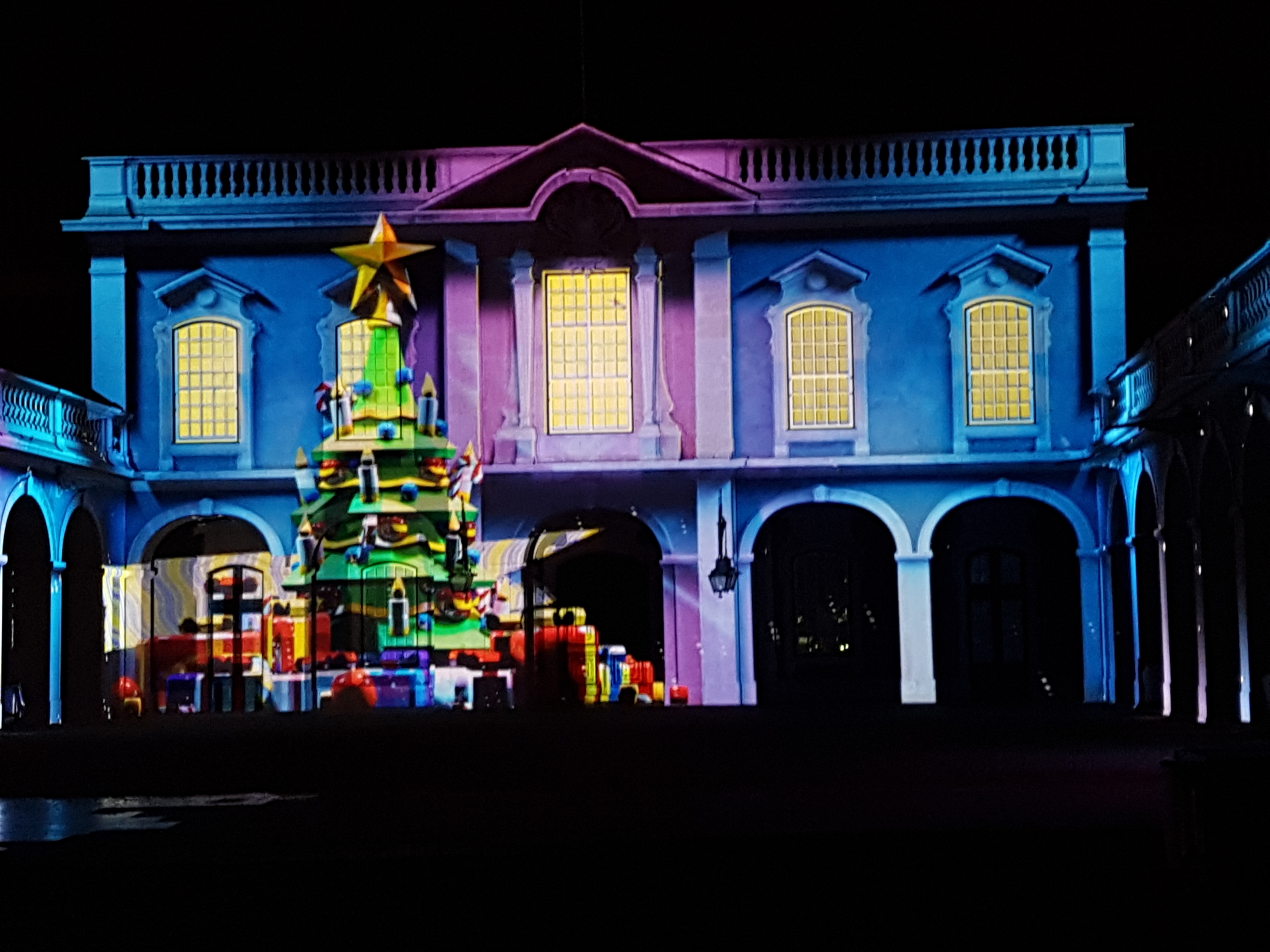 Estas fotos são do Video Mapping em Lisboa, de anos anteriores, que é um dos pontos altos da época natalícia. São poucos minutos de vídeo mas as crianças e os adultos adoram. As zonas que rodeiam o espectáculo estão bem decoradas e com atividades interessantes. Valem bem a pena o passeio noturno.